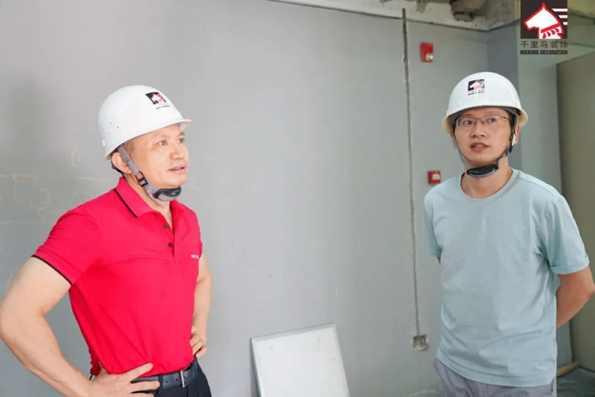 董事長李向東和項目經理徐昌榮看現場