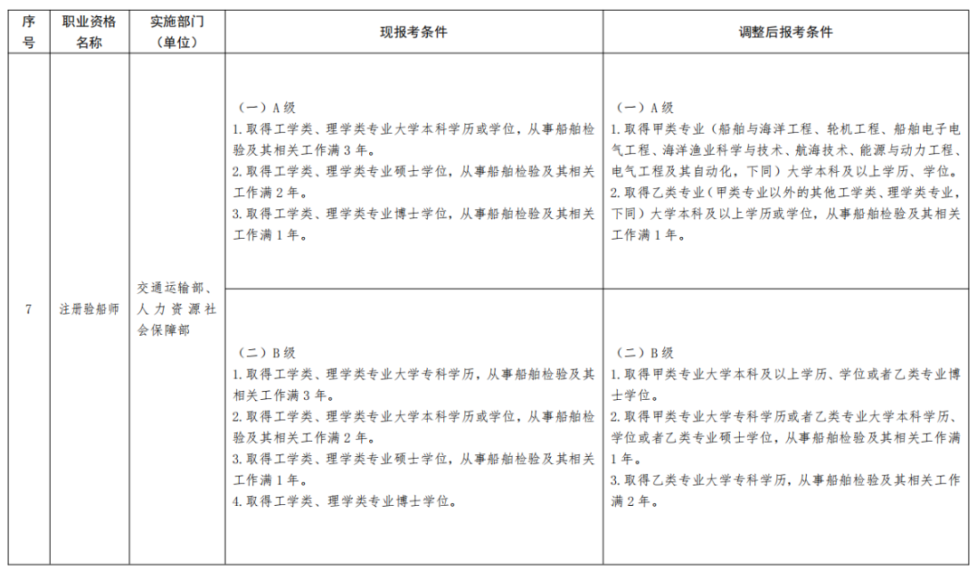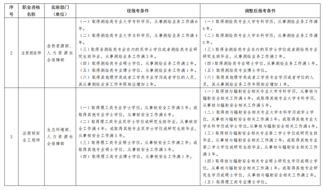 一、《部分準入類職業資格考試工作年限要求調整方案》(見附件)自2022年起實施。除調整考試工作年限要求外,13項準入類職業資格的其他考試報名條件不變。