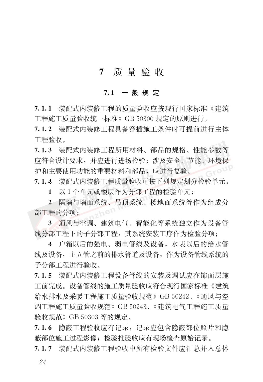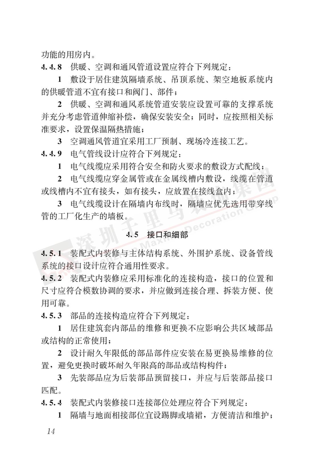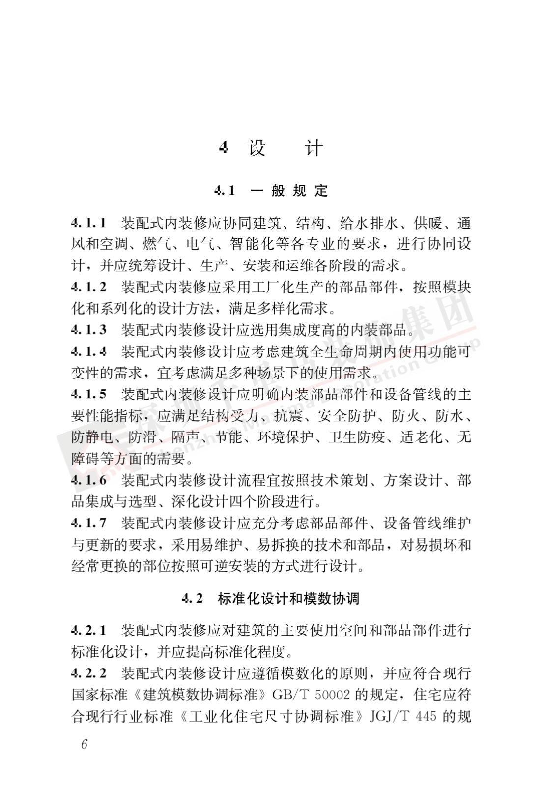 裝配式內(nèi)裝修的設(shè)計、生產(chǎn)運輸、施工安裝、質(zhì)量驗收及使用維護,除應(yīng)符合本標(biāo)準(zhǔn)外,尚應(yīng)符合國家現(xiàn)行有關(guān)標(biāo)準(zhǔn)規(guī)定。